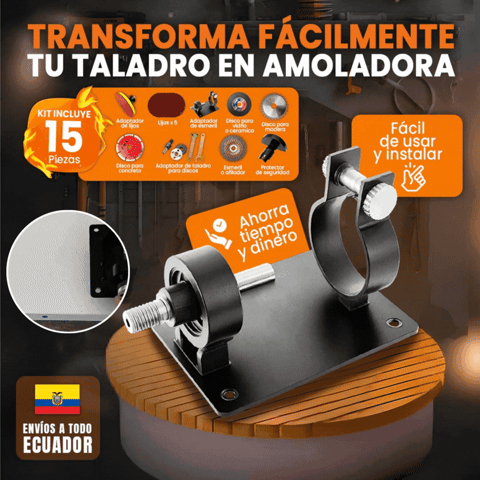 Este adaptador inteligente convierte tu taladro común en una herramienta multifunción que corta, pule y desbasta como una amoladora profesional. Perfecto para trabajos de construcción, renovaciones del hogar, manualidades y proyectos DIY.
