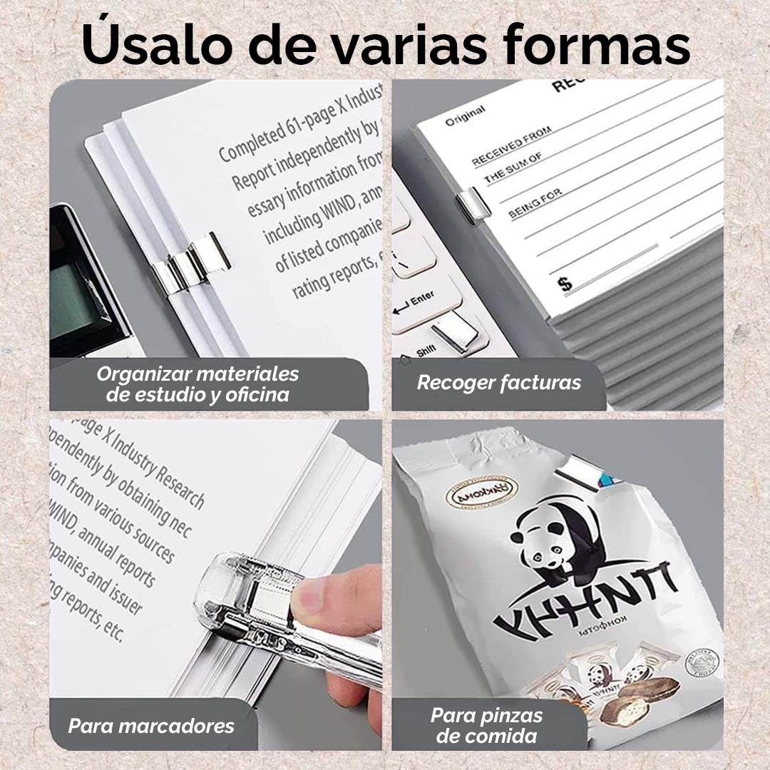 Olvídate de las grapas y las perforaciones dolorosas. Nuestro Sujetador de Hojas tipo Grapadora revoluciona la forma en que organizas tus documentos.
