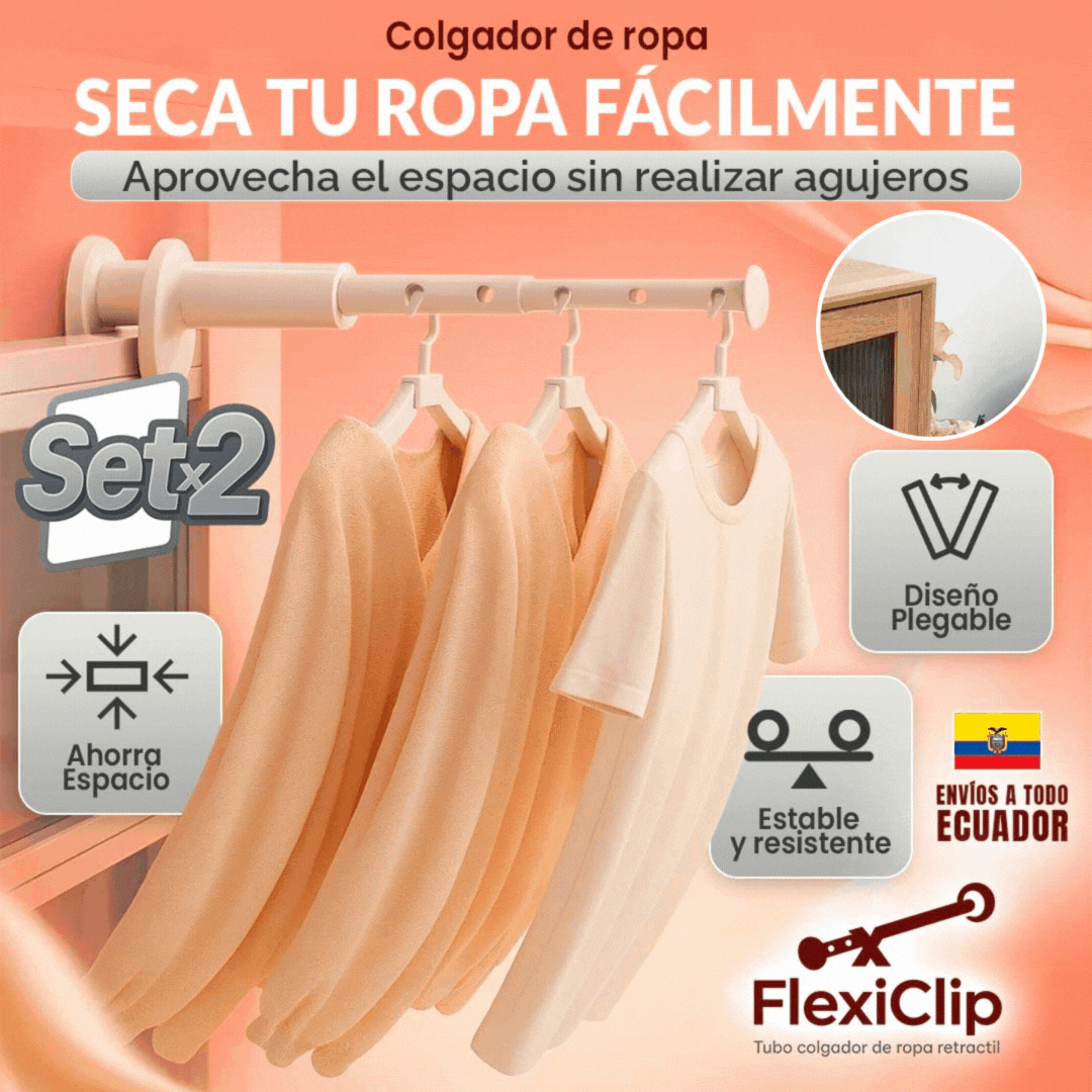 FlexiClip - Tubo colgador de ropa retractil Set x2 🎁Promo Lanzamiento🎁
