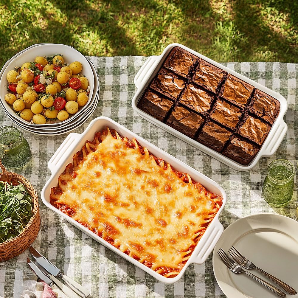 Juego de 3 REFRACTARIOS de cerámica para hornear-BLANCOS